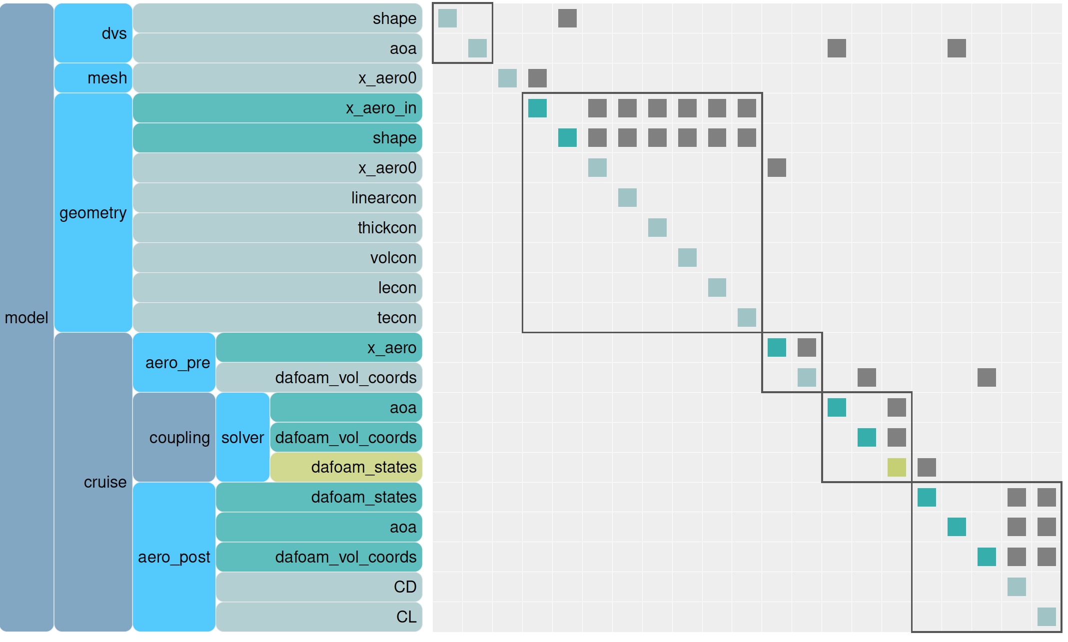 Figure 1: N2 diagram for a typical DAFoam aerodynamic optimization case.