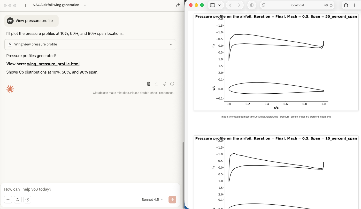 View pressure profile. If the CFD finishes, you can ask Claude to plot the pressure profile.
