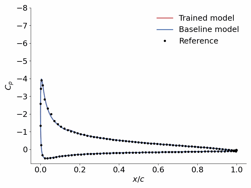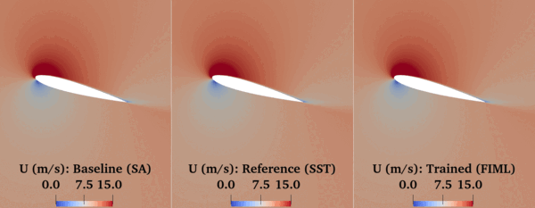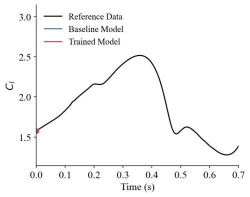 This tutorial showcases DAFoam’s FIML capability in augmenting RANS turbulence models in predicting time-resolved unsteady flow with a moving boundary. Here we use the unsteady flow in the NACA0012 airfoil dynamic stall as an example. The airfoil is pitching up with 0.5 rad/s. We use only the Cd time-series from the k-omega SST as the training data. We then augment the SA model to match the spatial-temporal distribution of the flow fields from the SST model.