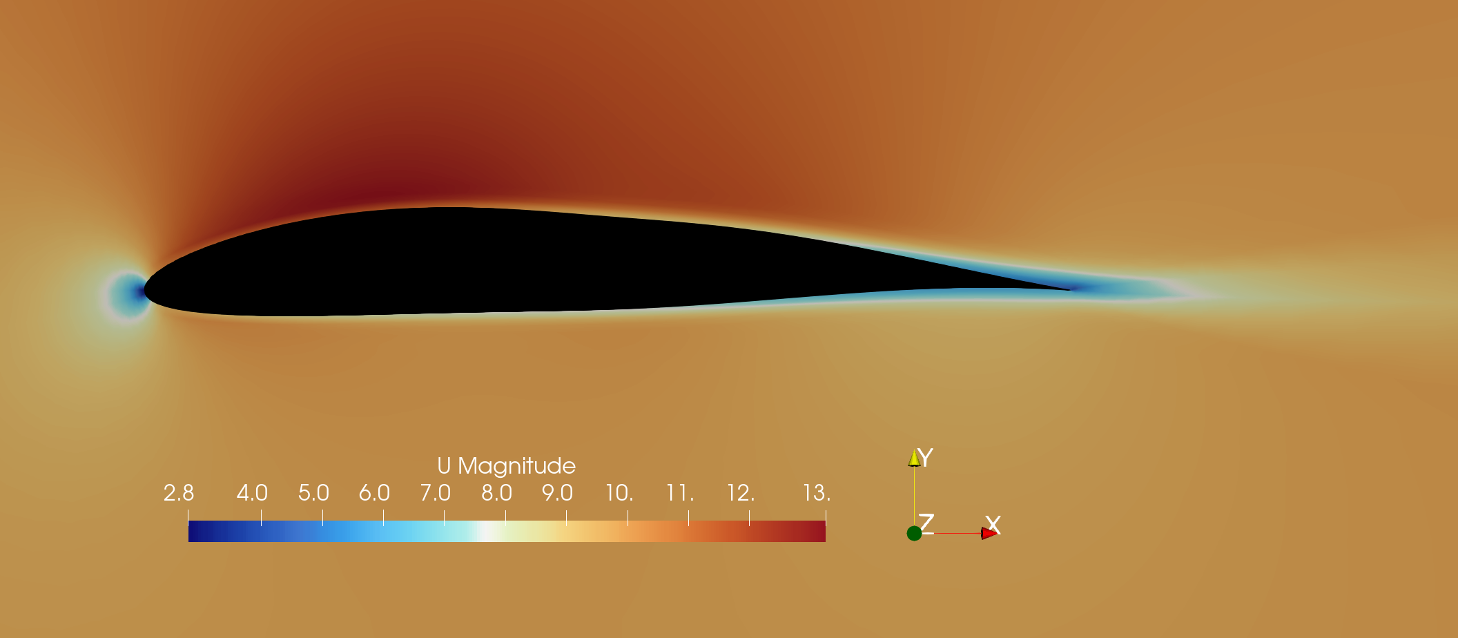 Fig. 2. Optimized NACA0012 airfoil velocity field